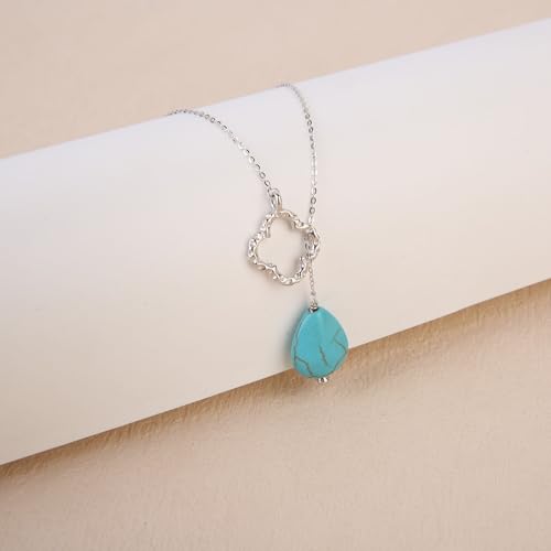 Colloca Turquoise Y-shaped Necklace for Women, 925 Sterling Silver Four Leaf Clover Necklace, Boho Jewelry, Gift Box included