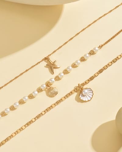 in-demand ! Charm Shell Necklace for Women Layered Gold Seashell Starfish Pearl Necklaces 14k Gold Plated Stackable Neck Chain Summer Beach Hawaiian Jewelry Accessories for Her