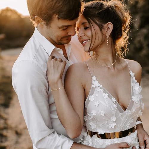 Gold Jewelry Set for Women, Dainty 14K Gold/Silver Plated Pearl Necklace and Earring Set with Drop Earrings, Bracelets, Choker Necklace - Wedding Jewelry Gift