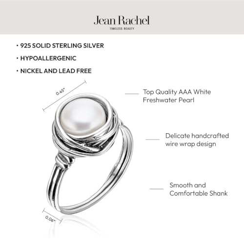 JEAN RACHEL JEWELRY 925 Sterling Silver Ring with Fresh Water Pearl Wire Wrap Vintage Design - Hypoallergenic, Nickel & Lead-no-cost - Artisan Handcrafted Statement Rings for Women
