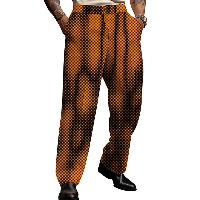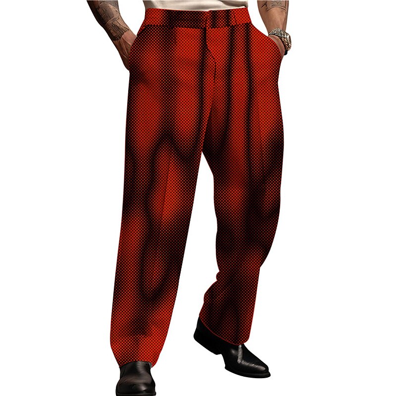 Highlights [Fabric] : These men's 3D print dress pants are crafted from high-quality polyester, providing a lightweight and breathable experience. The micro-elasticity of the fabric ensures a comfortable fit that allows for easy movement. [Fit & Style] : Designed with a regular fit, these pants showcase a modern yet versatile silhouette. Their optical illusion and gradient ramp pattern create an abstract and eye-catching look suitable for business or casual wear. [Design Highlights] : Featuring a bold color palette of black, red, and blue, these trousers make a statement with their unique 3D print design. The secure high waistline adds a touch of sophistication, while the practical side pockets offer convenience for everyday use. [Occasions] : Perfect for streetwear, outdoor activities, or even wear-to-work settings, these pants adapt seamlessly to various environments. Their chic appeal makes them an ideal choice for anyone looking to incorporate a pop of color and pattern into their wardrobe. [Size Range] : Available in sizes S, M, L, XL, XXL, and 3XL, these pants cater to a wide range of body types, ensuring a comfortable and tailored fit for different preferences. Perfect for everyday use. first-class materials and excellent craftsmanship ensure long-lasting durability.