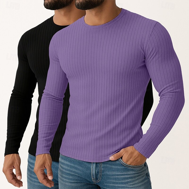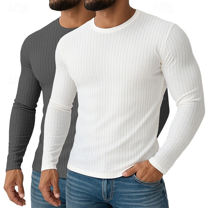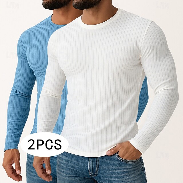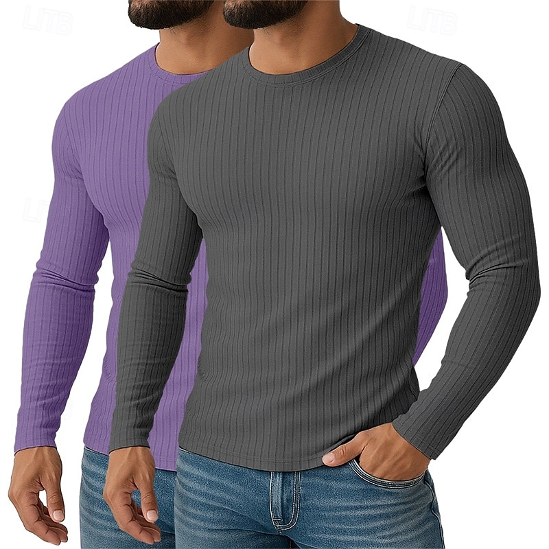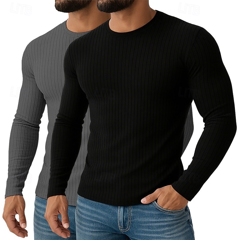 This Men's T Shirt Muscle Shirt Ribbed Knit tee Tee Top Long Sleeve Crew Neck Spring Fall All Seasons Solid Color Plain Textured Fashion Designer Basic 2 Piece Knitting Plain Vacation Street Casual combines elegant design with practical functionality. Every detail has been carefully considered to ensure you get the best possible experience. The magnificent construction means this product will serve you well for years to come.