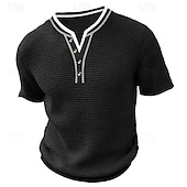 Men's Henley Shirt Short Sleeve Shirt Tee Top Solid Color Henley Outdoor Street Button Clothing Apparel Daily Hawaiian