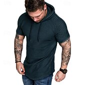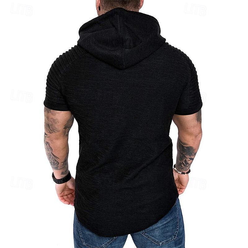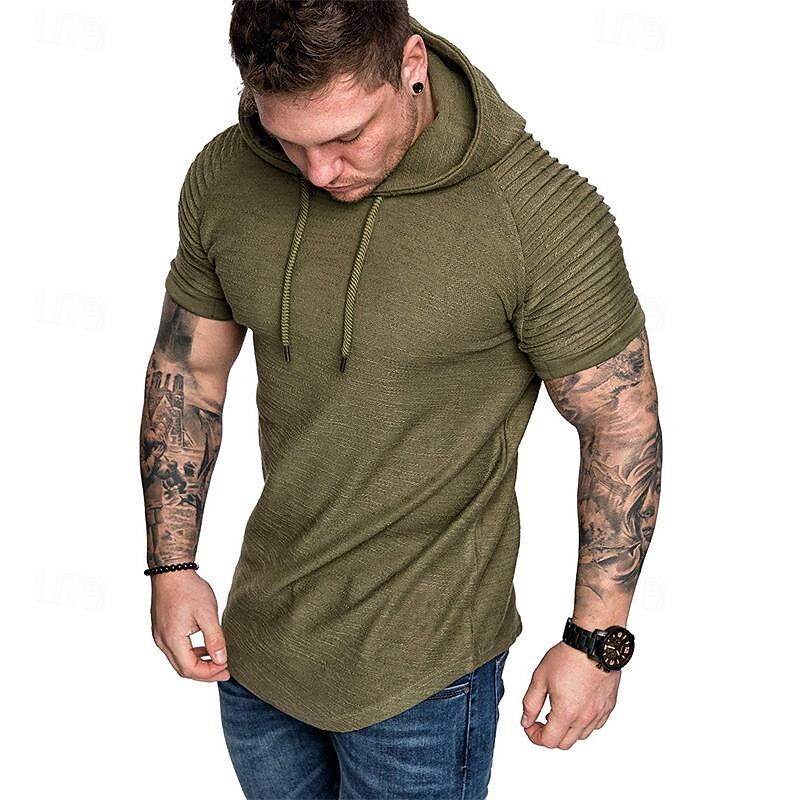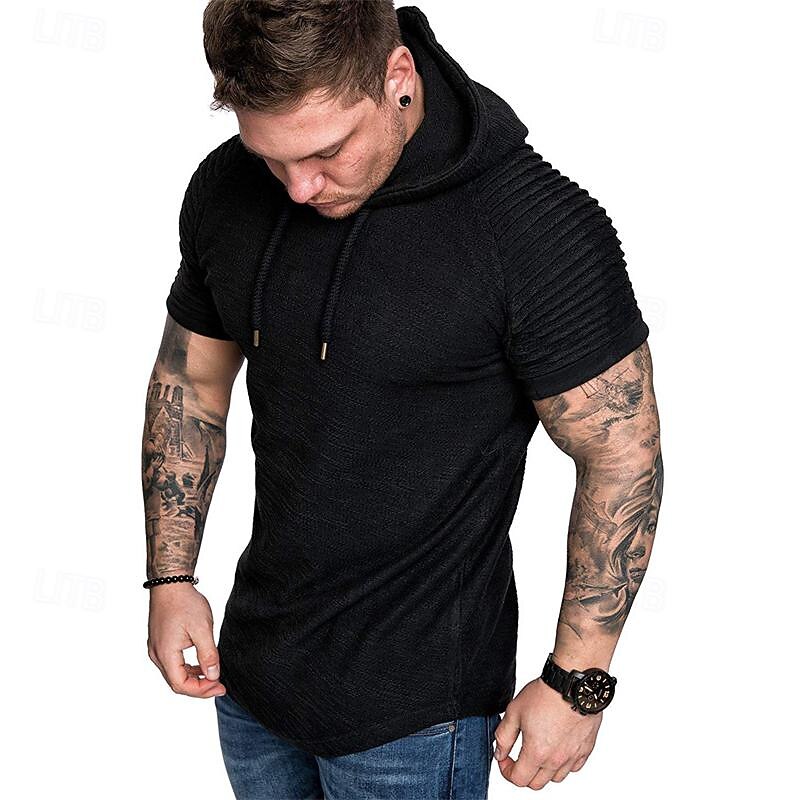 Men's T Shirt Tee Short Sleeve Shirt Tee Top Short Sleeve Hooded Spring & Summer Plain Slim Pleated Fashion Designer Basic Vacation Street Going out Black White Khaki Top Tee for Men