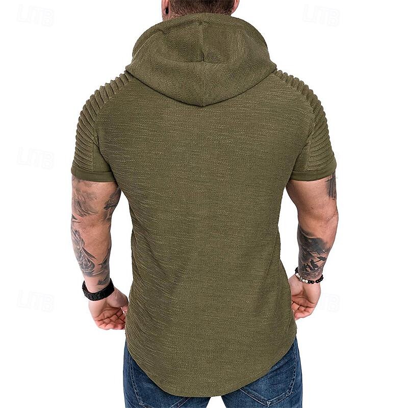 Highlights [Fabric:] Crafted from high-quality polyester, this men's short-sleeve hoodie offers a micro-elastic fit that ensures comfort and breathability, making it perfect for spring and summer wear. [Fit Type:] Designed with a regular fit, this hoodie provides ease of movement and a laid-back chic look, ideal for both casual daily activities and more active pursuits. [Design Highlights:] Featuring a drawstring hood and ribbed detailing on the shoulders, this hoodie adds a touch of modern texture and style to your ensemble. The subtle woven pattern in the fabric adds to its visual appeal, enhancing its overall aesthetic. [Occasions:] Suitable for a variety of settings, from casual street outings to vacations and daily wear. Pair it with jeans or shorts to create a versatile and fashionable everyday look that adapts effortlessly to different occasions. [Size Range:] Available in sizes from M to 3XL, catering to a wide range of body types, ensuring every man can find the perfect fit for ultimate comfort and style. The hoodie comes in multiple color options, including White, Black, Army Green, Dark Grey, and Khaki. Perfect for everyday use. first-class materials and excellent craftsmanship ensure long-lasting durability.