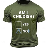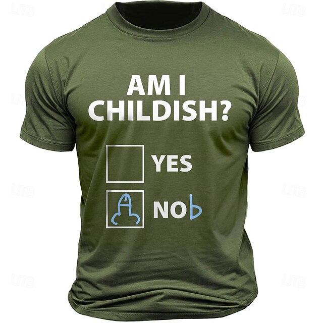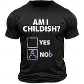 Highlights [Fabric] Crafted from 100% soft cotton, this menβs T-shirt offers a breathable and comfortable fit, perfect for everyday wear. The quality fabric ensures durability and a micro-elastic structure that accommodates movement. [Fit] With its classic crew neck and regular fit, this short sleeve tee offers a versatile style that suits various body types. It provides a relaxed yet trendy look, making it an excellent choice for casual days. [Design Highlights] The shirt features a humorous letter-printed design with the text AM I CHILDISH? accompanied by two checkbox options YES and NO. This playful graphic adds personality and serves as a fun conversation starter, ideal for those who love to express humor through their clothing. [Occasions] Perfect for street style, outdoor activities, and casual sports events, this T-shirt suits a variety of settings. Whether you're heading out for a weekend adventure or just a stroll in the park, this tee adds a fun and unique flair to your outfit. [Size Range] Available in sizes S to XXL, the T-shirt provides options to ensure a comfortable fit for adults. The versatile sizing makes it accessible for a wide audience, allowing everyone to enjoy its humorous style. Perfect for everyday use. excellent materials and excellent craftsmanship ensure long-lasting durability.