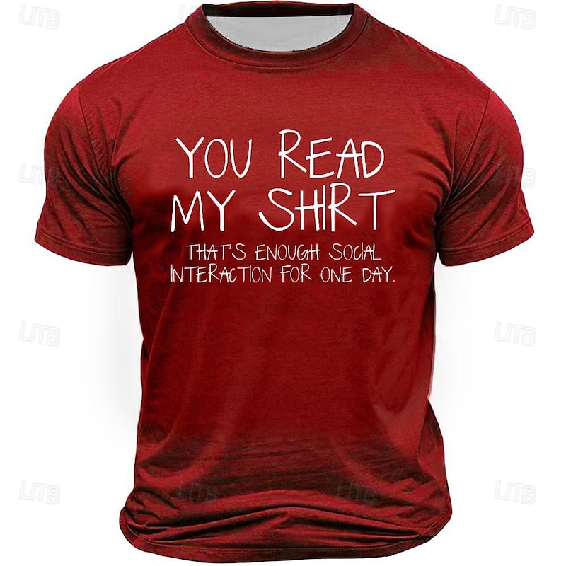 in-demand ! Men's Funny Graphic T-Shirt: 'You Read My Shirt, Enough Social Interaction' Introvert Lifestyle Short Sleeve Tee