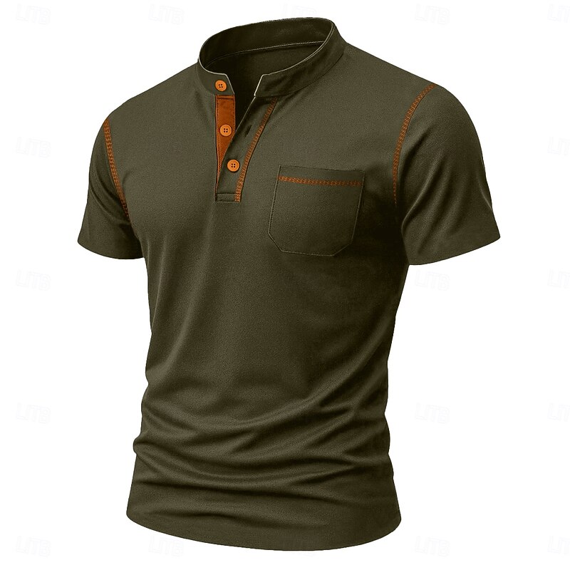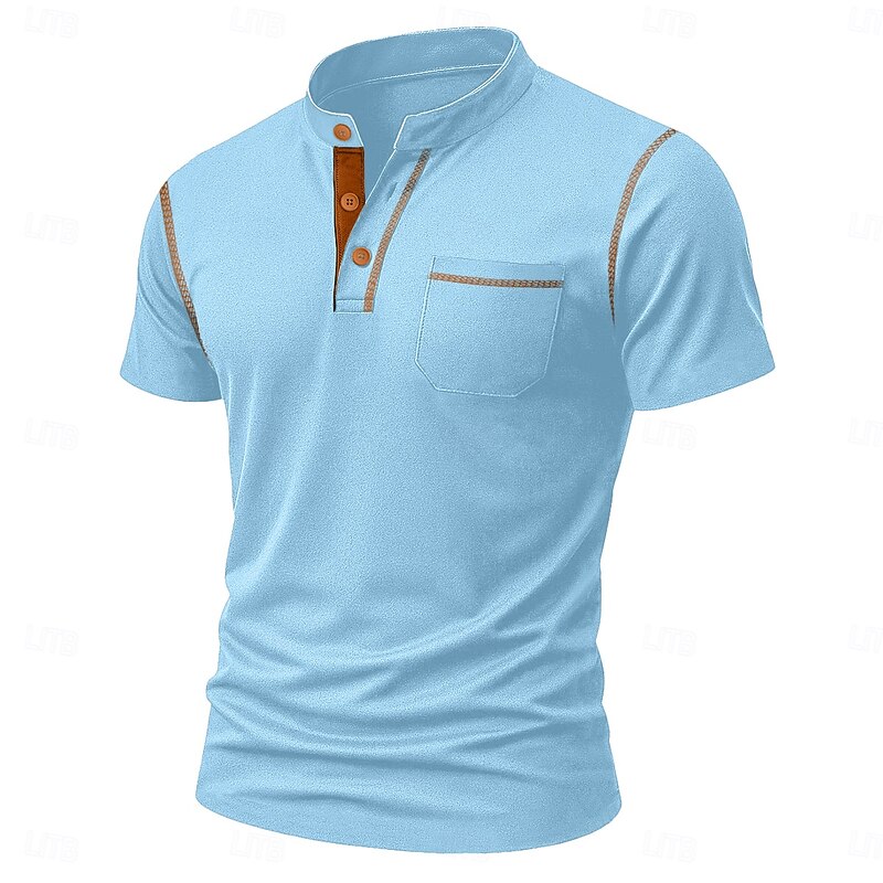 More information about Men's Henley Shirt Tee Short Sleeve Solid Color Plain Casual Pocket Buttons Contrast Stitching Henley Outdoor Casual Daily Summer Spring & Fall Black White Light Blue Henley T-Shirt