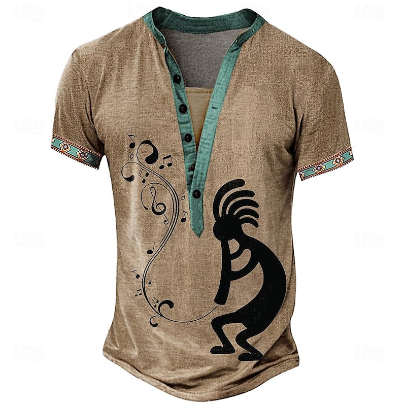 More information about Men's Tribal Bandana Print T Shirt Henley Shirt Short Sleeve 3D Print Vacation Tropical Fashion Vacation Casual Daily Summer Spring Yellow Brown Khaki Henley Henley T-Shirt