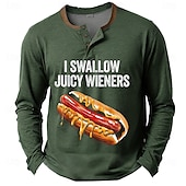 Men's Long Sleeve Henley T-Shirt, Humorous 'I Swallow Juicy Wieners' must-have Dog Pun Graphic