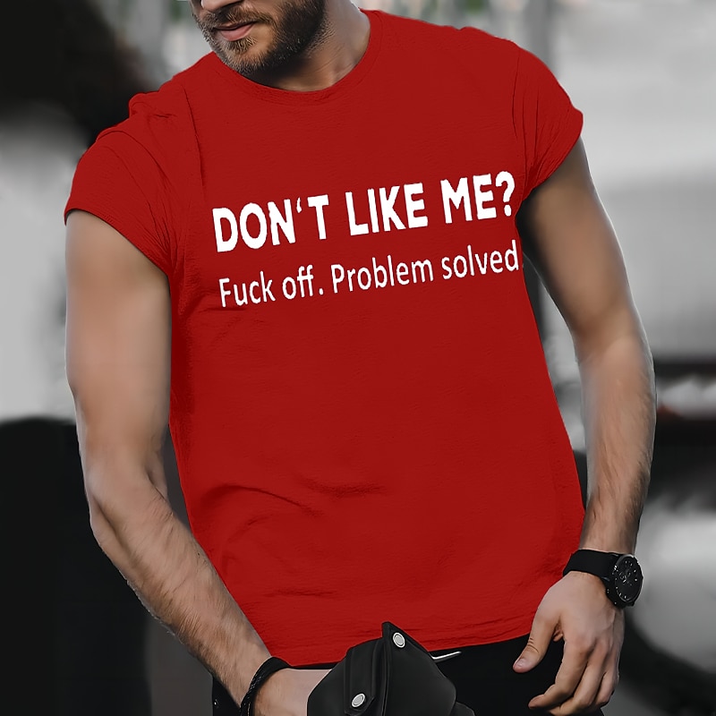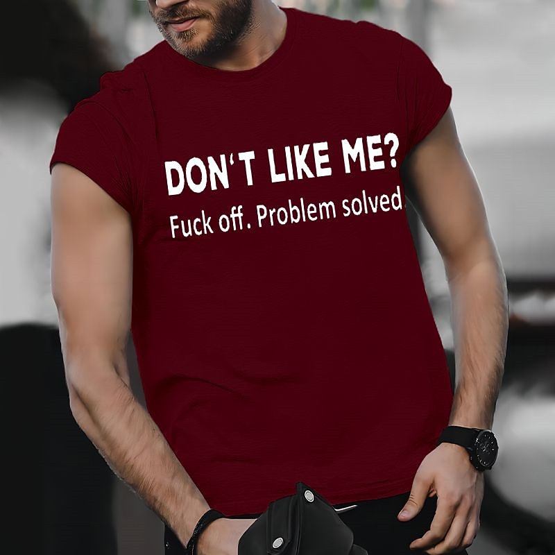 : Features a bold graphic print with humorous letter designs on the front, this T-shirt showcases personality and style. The eye-catching prints are ideal for making a statement in any casual setting.
