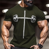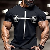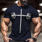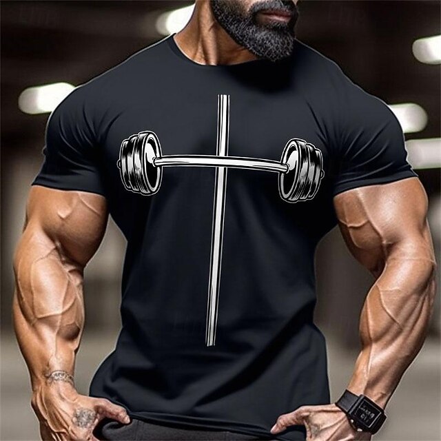 Men's Black Graphic T-Shirt Barbell Cross Gym Workout Short Sleeve Tee