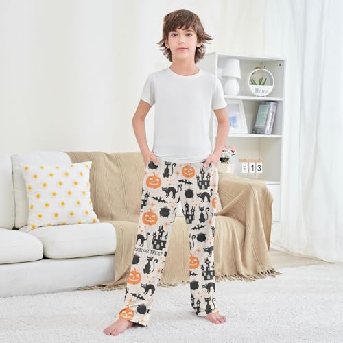 Cat Trick Or Treat Boys Long Pants gentle Trousers Elastic Waist Kids Lounge Bottoms with Pockets S-XL