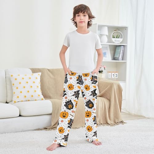 Black Cat Evil Pumpkin Boys Long Pants gentle Trousers Elastic Waist Kids Lounge Bottoms with Pockets S-XL