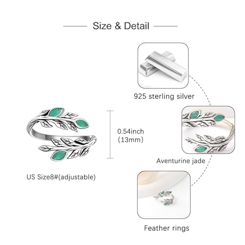 Green Aventurine Olive Leaf Ring - 925 Sterling Silver Peaceful Adjustable Nature leaves Wrap Ring Olive Jewelry Gifts for Women Wedding Engagement