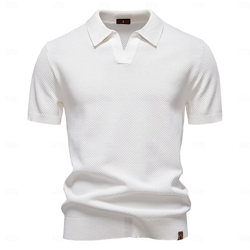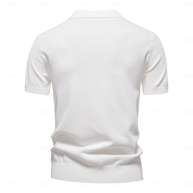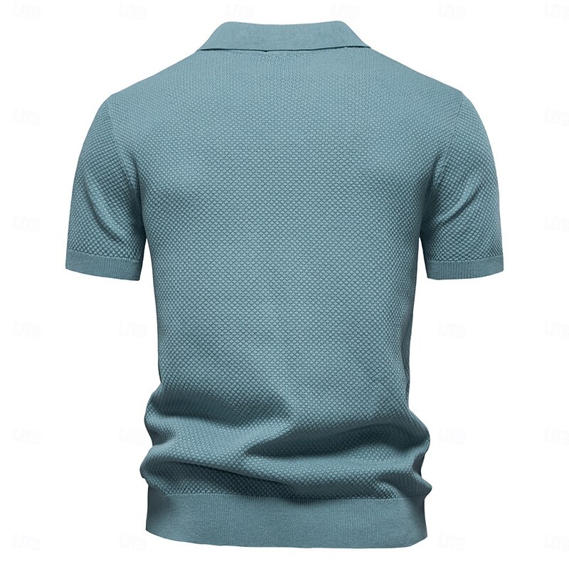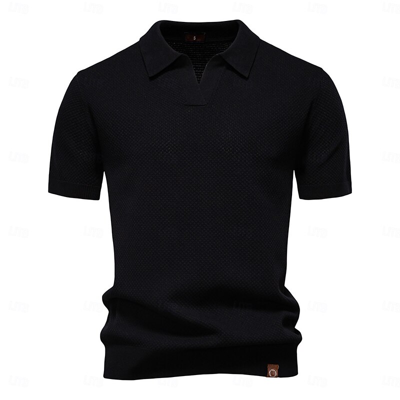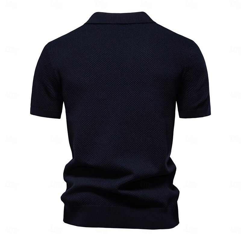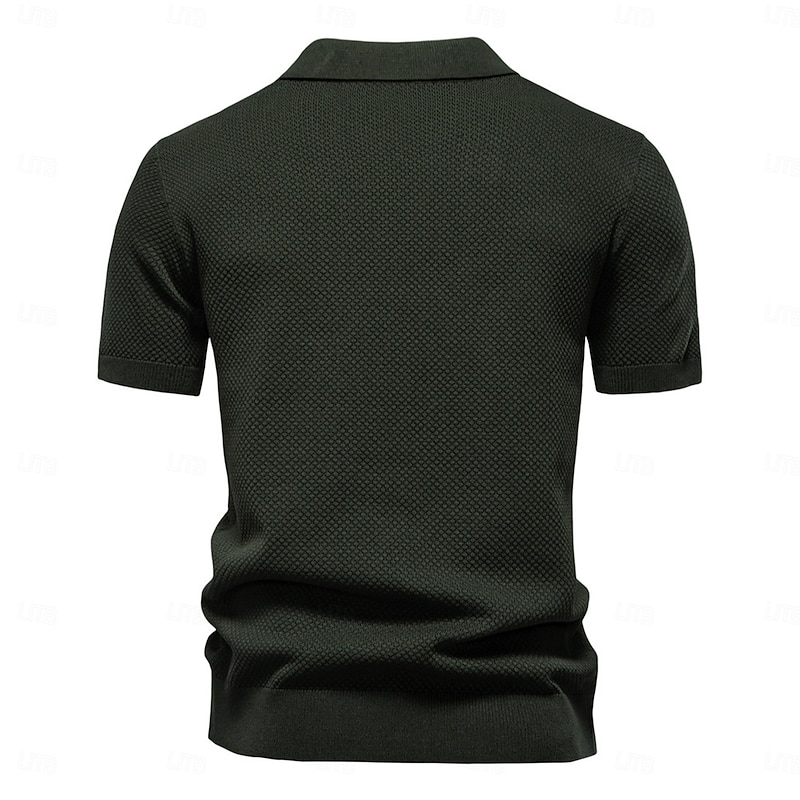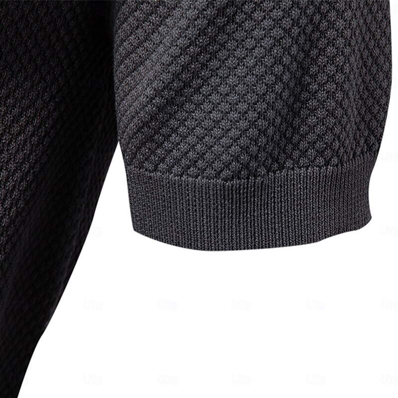 More information about Men's Polo Knit Polo Sweater Business Casual V Neck Short Sleeve Formal Solid Color Textured Novelty Summer every Seasons Light Blue Black White Navy Blue Army Green Dark Gray Polo