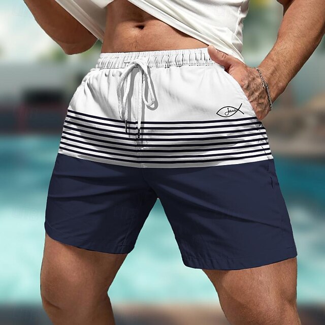 $17.99 - Men's Stripes Geometric Pattern Swim Shorts Board Shorts Swimming Trunks Mid Waist Hawaiian Casual Holiday Beach Drawstring with Mesh lining Elastic Waist Designer Clothing Apparel 2025. Shop for cheap Geometric Print online? Buy at lightinthebox.com on sale today!