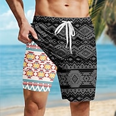 More information about Men's Aztec Ethnic Lined Shorts 2 in 1 Board Shorts Swim Shorts Mid Waist Hawaiian Retro Vintage Holiday Beach Wear Side Pockets With Compression Liner Elastic Drawstring Waist Designer Clothing