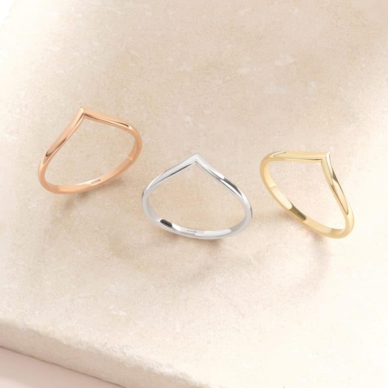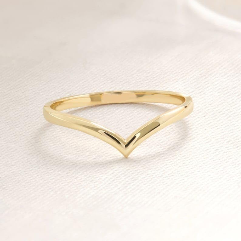 V Shape Chevron Wishbone Wedding Ring Curved Band, V Design plain Promise Ring Women, Contoured Knuckle Engagement Rings - GJH096