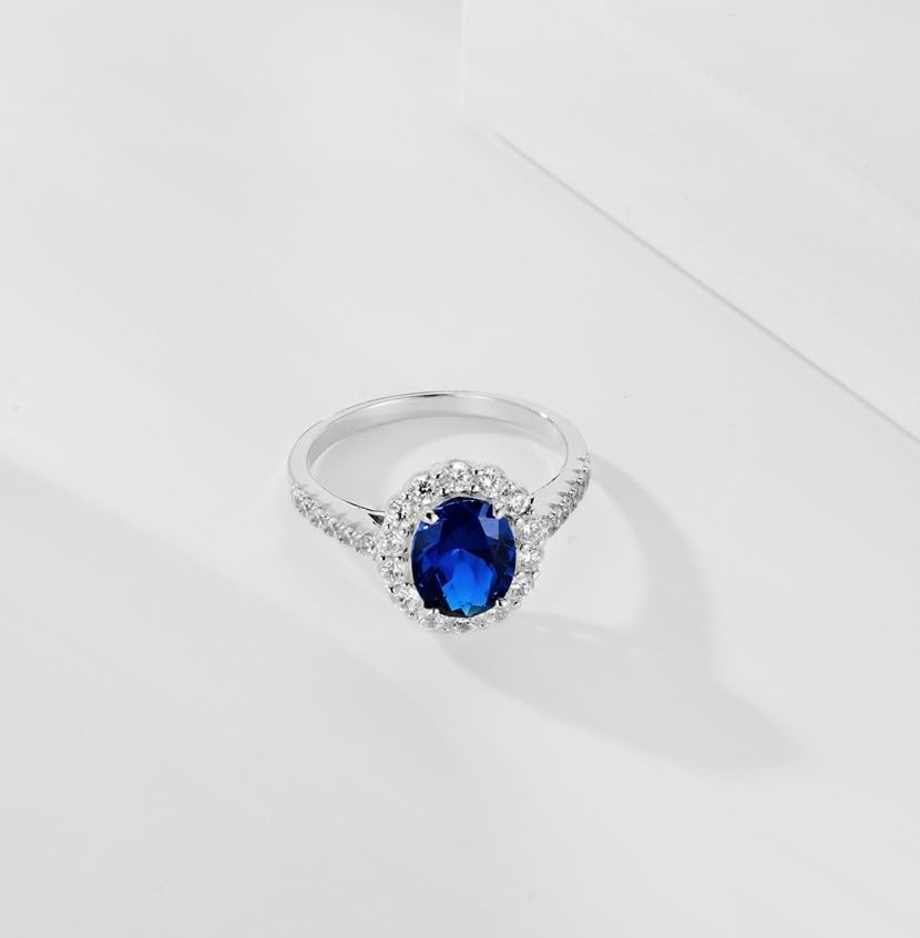 Ring size: 5Material: MetalMetal type: Sterling SilverGem type: Created Blue Sapphire1- CLASSICALLY SIMPLE & ELEGANT: The timelessly elegant oval halo engagement ring for women is here to add to your ever-growing womens jewelry collection; Our celebrity inspired princess Diana ring will add a classic and sophisticated accent to any outfit while simple to stack with other gems from your jewelry box - a must-have women's ring for any jewelry-lover2- SOLID 925 STERLING SILVER: A real treasure, this created sapphire ring for women is expertly made from the premium 925 sterling silver for luxurious shine; Impeccably finished with a striking shimmer to demand attention, our sterling silver ring will complement all skin tones, and make it a most stylish choice for fashionable ladies3- SHIMMERING CUBIC ZIRCONIAS: Clustered in an oval silhouette are a collection of premium quality 5A cubic zirconias, while the real deal of this royal wedding ring is a large oval shaped simulated sapphire measuring 9mmX7mm that takes center stage; With alluring sparkles in every move, this cubic zirconia ring for women is sophisticated in each detail, making it statement-ready as an engagement ring, or a statement cocktail ring4- FREE FROM LEAD & NICKEL: To protect your sensitive skin, our halo cz engagement ring is 100% lead and nickel free, making it a perfect choice to suit everyone and saving you from hidden dangers; Safe to grace the hand of any lucky lady, this silver promise ring makes an ideal jewelry gift for worry-free enjoyment, even for the most sensitive skin types5- CELEBRATE WITH PERFECT GIFT: Available in multiple ring sizes, our anillos de compromiso para mujer - a perfect gift for women for any occasion; Ideal as a birthday gift for mom, an anniversary gift for wife from husband with love, Valentines gift for girlfriend, and Mothers Day gift from son - whatever the reason, this womens necklace will be loved by all Perfect for everyday use. superior materials and excellent craftsmanship ensure long-lasting durability.