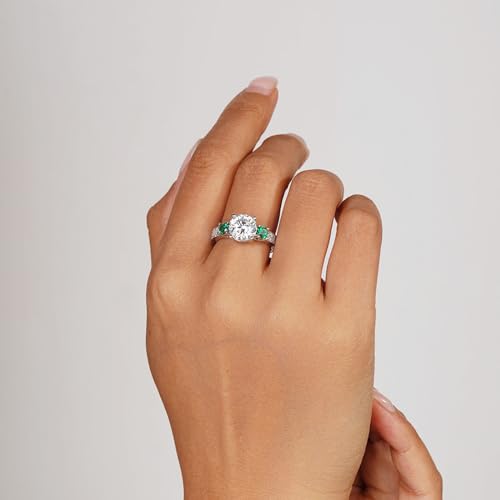 • Minimalist Solitaire Design and Brilliant Portuguese Rose Cut: The solitaire feature a 3 ct hight quality portuguese rose cut cubic zirconia with 162 facets. Portuguese cut zirconia can reflect a elegant spiral flower from the front view and enhance the overall brilliant fire. The band is also encrusted with pave zirconias and 2 emerald green stones, making it look more luxurious. It is a excellent fine jewelry alternative for wedding, prom, dressy banquet, cocktail party, etc
