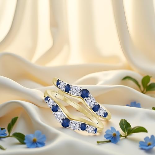 - DAZZLE_CREATION 1.10Ctw Round Cut Diamond & Sapphire Engagement Wedding Enhancer Wrap Guard Ring 925 Sterling Silver 14k Yellow Gold Finish 4