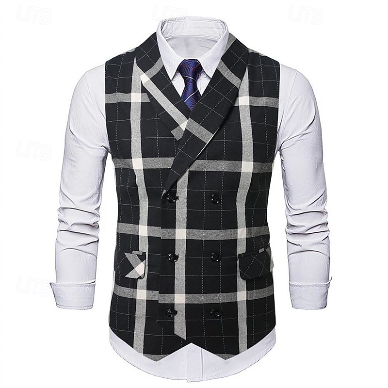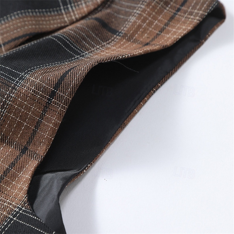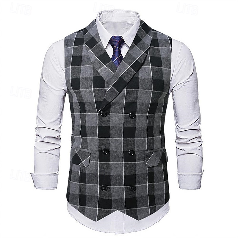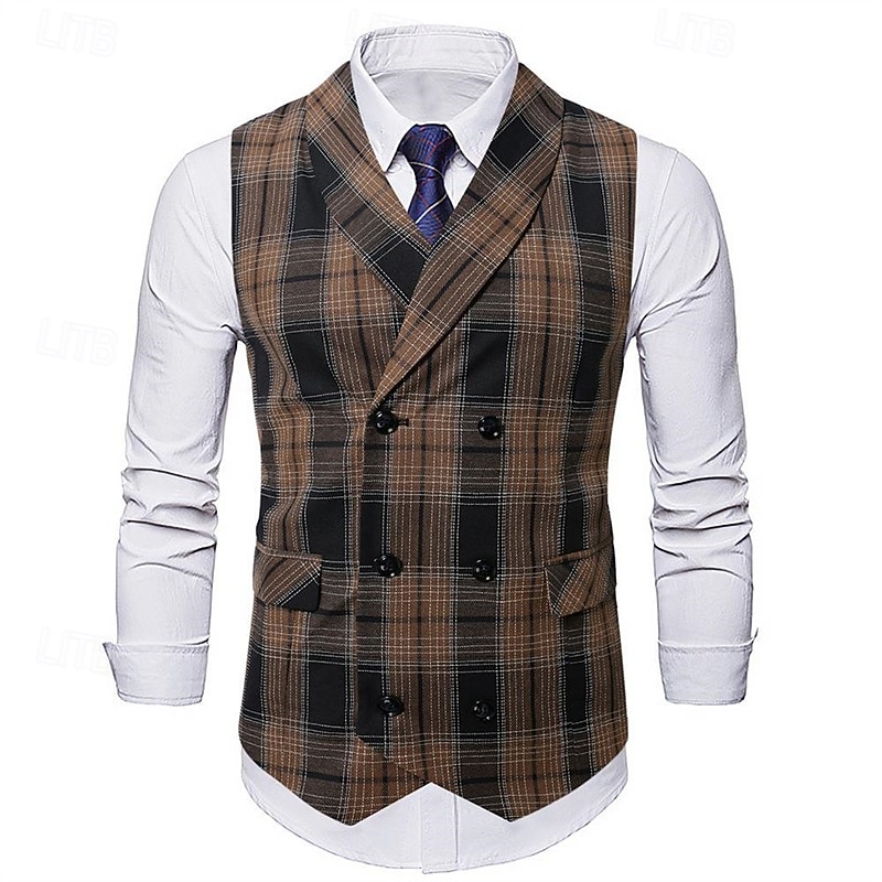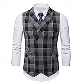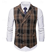 More information about Men's Vest Waistcoat Gilet Vacation Party Business Fashion Casual Spring & Fall Buttons Pocket Polyester pleasant Plaid Double Breasted Lapel Regular Fit Light Coffee Black Dark Gray Coffee Vest