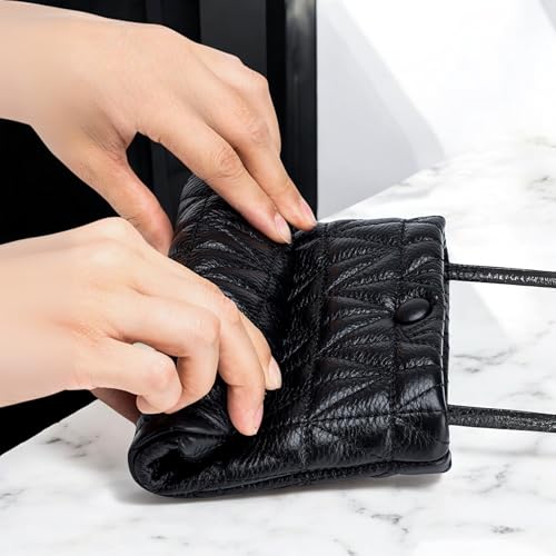 Genuine Leather gentle Quilted Phone Crossbody Small Purse, Shoulder Card Slot Pocket Wallet Bag Bling Rhinestone Key Ring