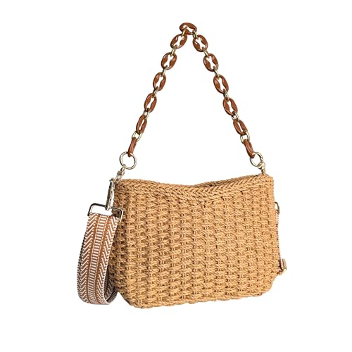 Eiyye Hobo Bag Women’s Straw Crossbody Bag Handmade Small Woven Summer Beach Handbag with Chain for Travel, Shopping, Camping, Beach Vacations