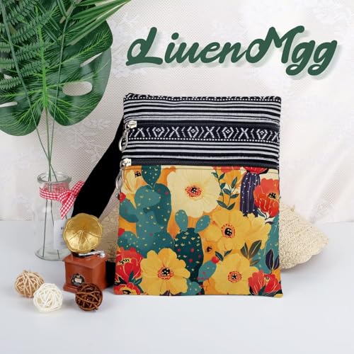 Colorful Flower Messenger Bag Small Ethnic Pattern Printed Adjustable Strap Crossbody Zipper Bag Colorful Flower Phone Bag Wallet Cute Shoulder Handbag for Women Friends -8
