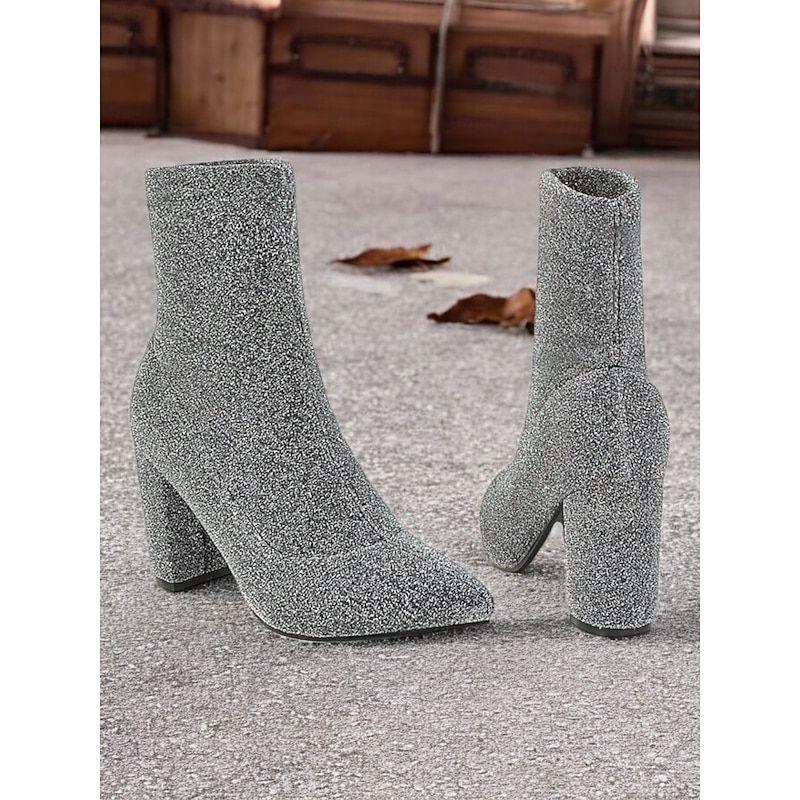 More information about Women's Glitter Ankle Boots with Block Heels – Elegant Sparkly High-Heeled Booties for Parties and Special Occasions
