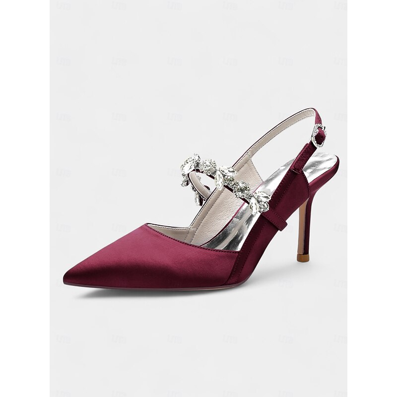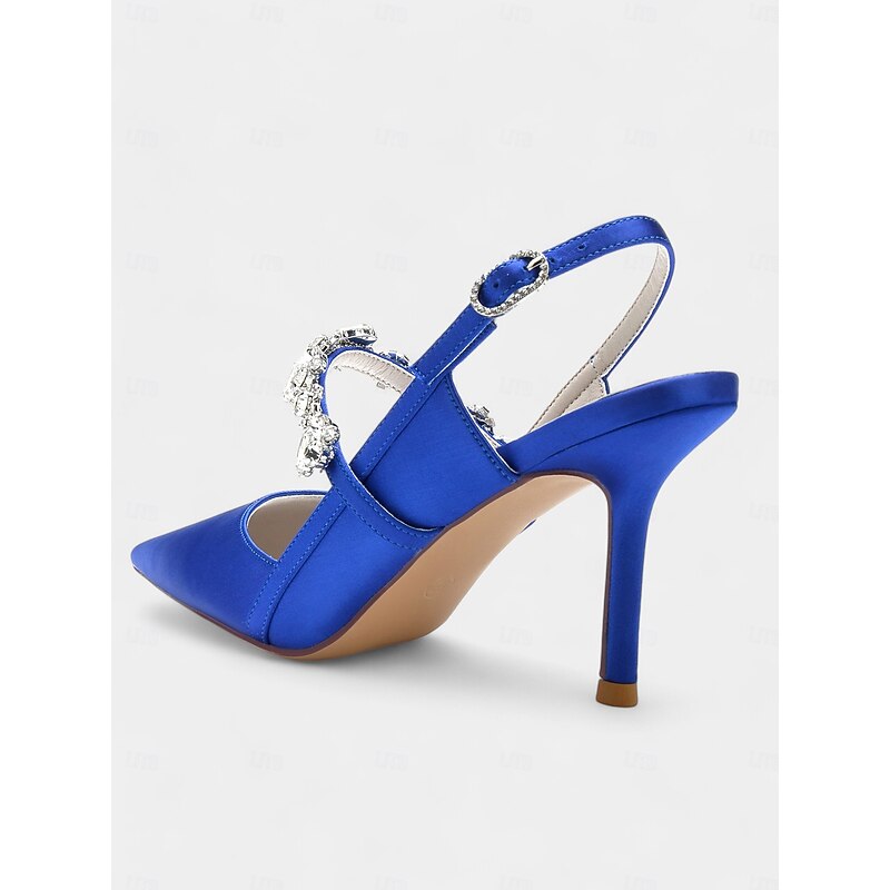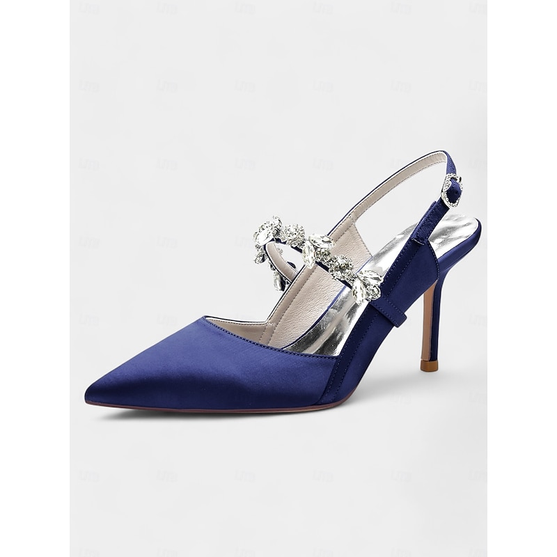 More information about Women's White Satin Slingback Heels with Rhinestone Embellishments – Elegant Pointed-Toe Shoes for Weddings and Formal Occasions