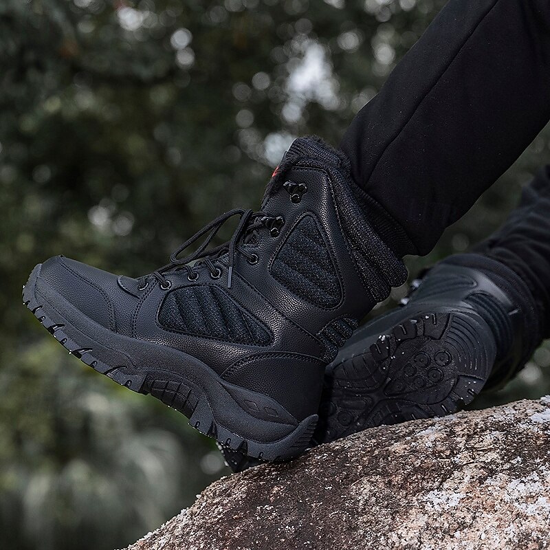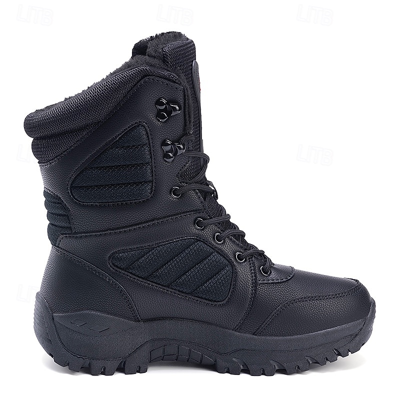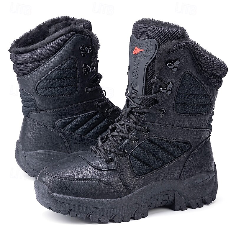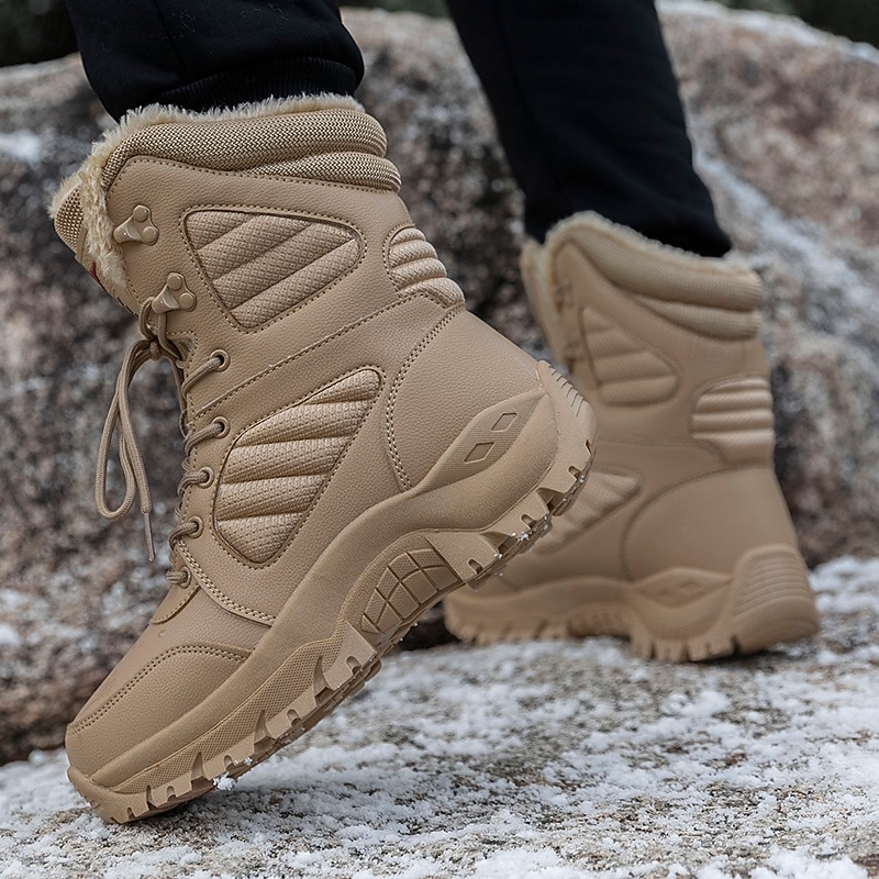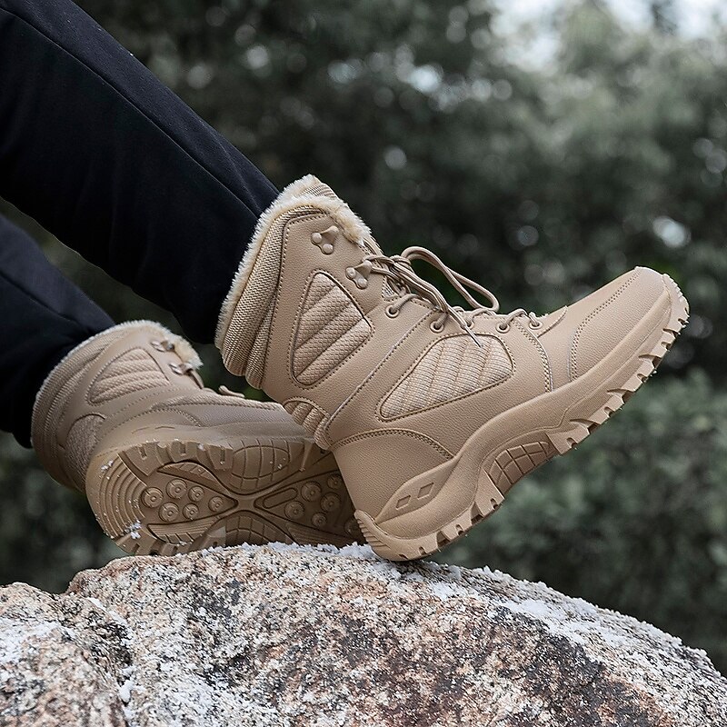 Highlights [Fabric] : Crafted from durable PU leather and nylon, these men's tactical winter boots are designed to withstand the elements with water-resistant properties, ensuring your feet remain dry and comfortable. The plush fleece lining provides excellent insulation, keeping warmth locked in even in frigid temperatures. [Fit] : With a classic round toe design and a lace-up closure, these boots offer a secure and customizable fit. The rugged, slip-resistant rubber outsole ensures stability and traction on icy or snowy surfaces, making them a practical choice for all-weather wear. [Design Highlights] : Featuring reinforced stitching and a robust construction, these boots are built for longevity. The chic beige color offers a versatile appeal, allowing you to pair them effortlessly with a variety of winter outfits while maintaining a tactical and functional look. [Occasions] : Perfect for outdoor activities such as hiking, snow trekking, or any cold-weather adventures. These boots combine functionality with style, making them suitable for anyone seeking protection and comfort during winter months—ideal for both casual outings and more demanding outdoor excursions. [Size Range] : Available in a range of sizes including US7 to US11, these boots cater to a variety of foot sizes and ensure that everyone finds their perfect fit for optimal comfort and performance. Perfect for everyday use. first-class materials and excellent craftsmanship ensure long-lasting durability.