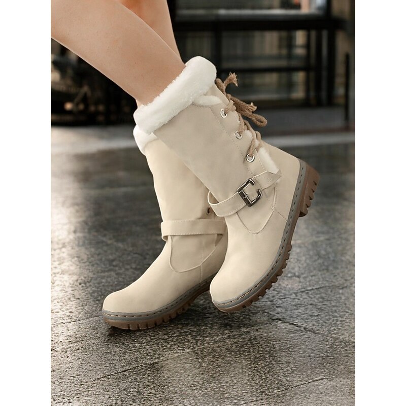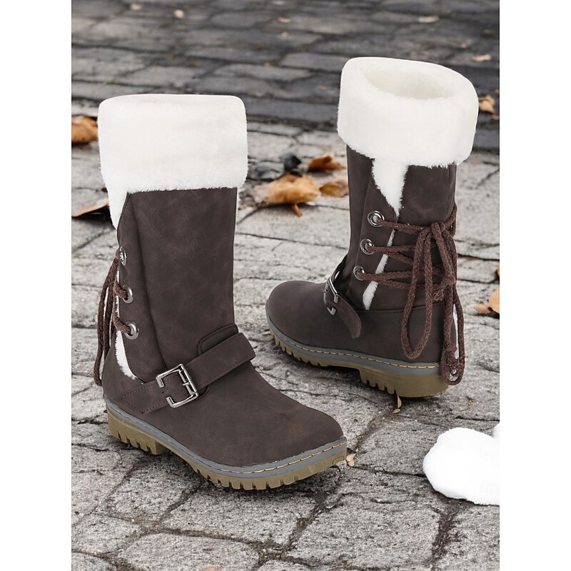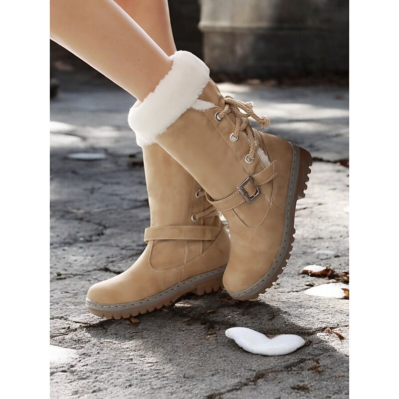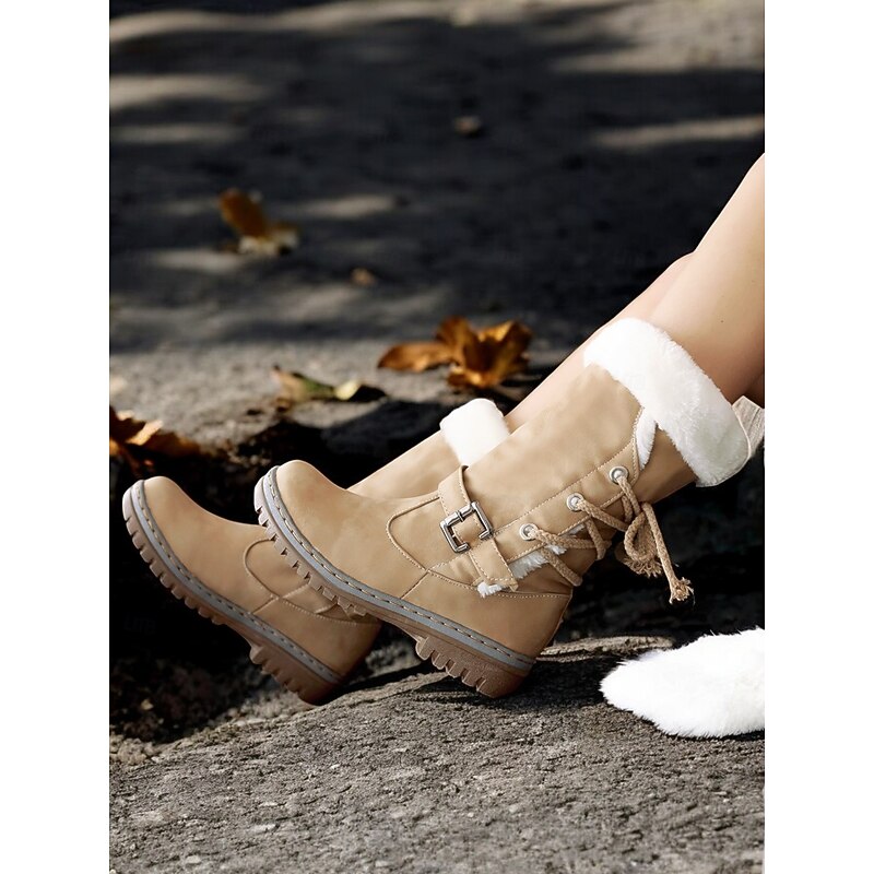 in-demand ! Women's Winter Snow Boots with Faux Fur Lining – cozy Waterproof Mid-Calf Boots with Buckle and Lace-Up Design