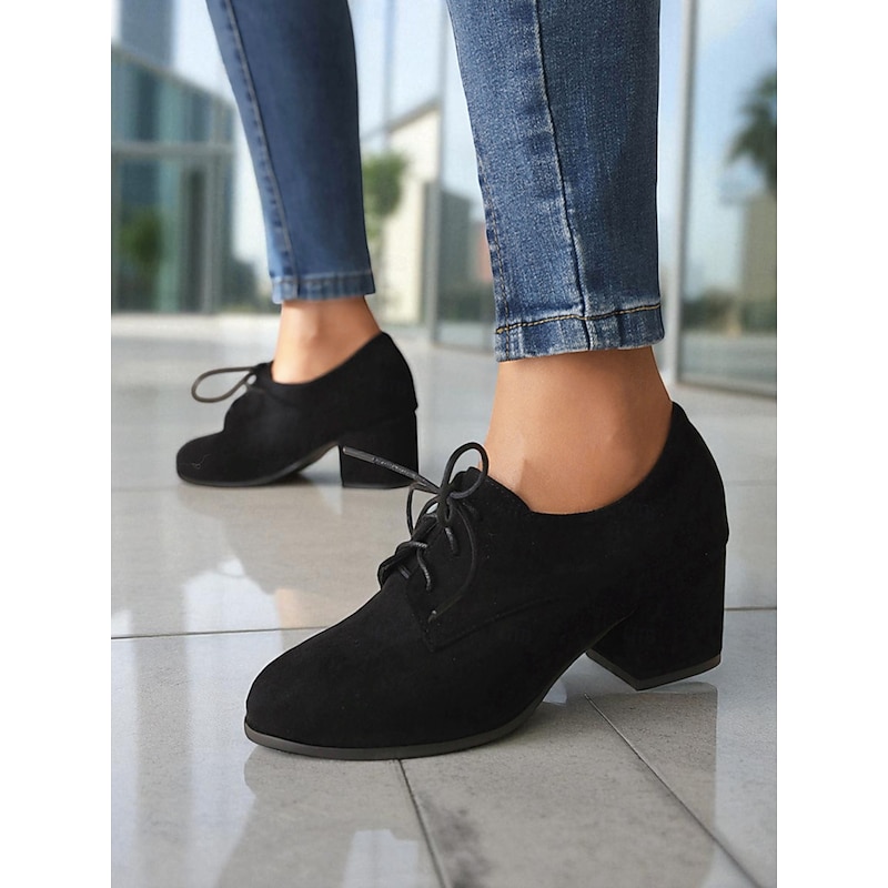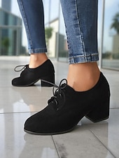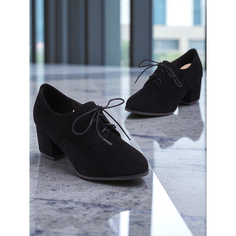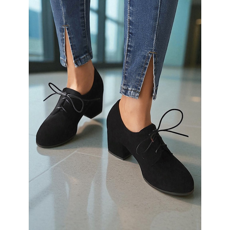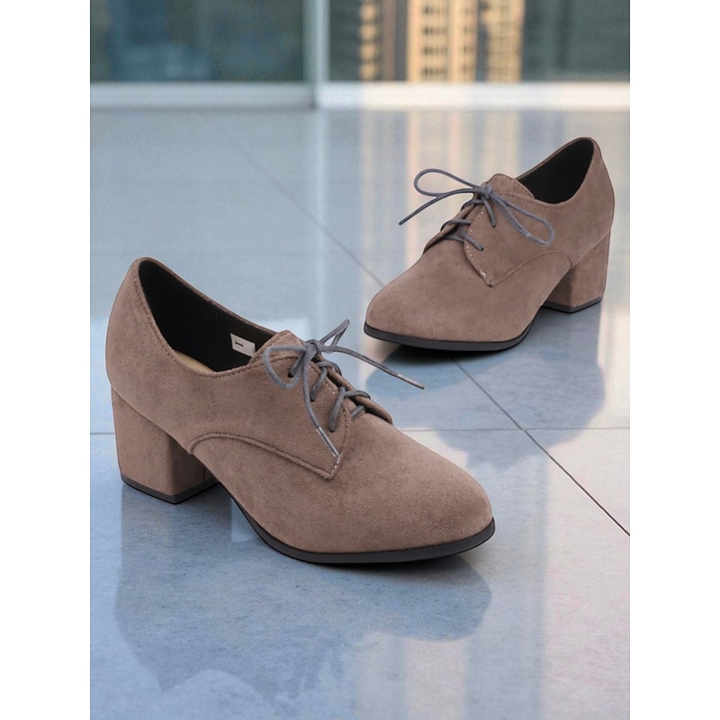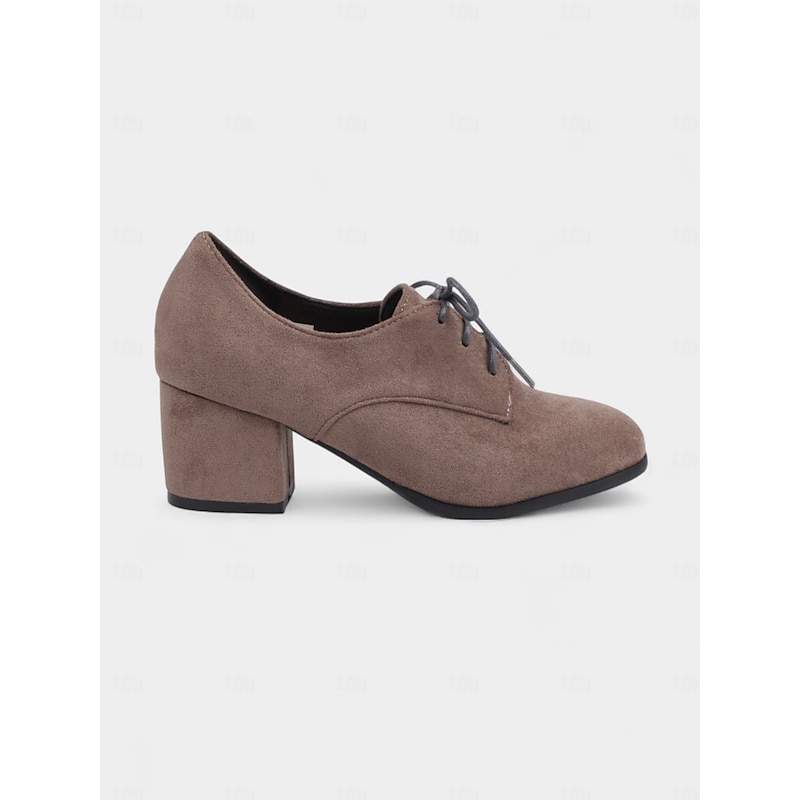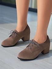 More information about Women's Brown Suede Oxford Heels - cozy Walking Lace-Up Vintage Style Shoes for Autumn Winter Outfits, Office, and Daily Wear