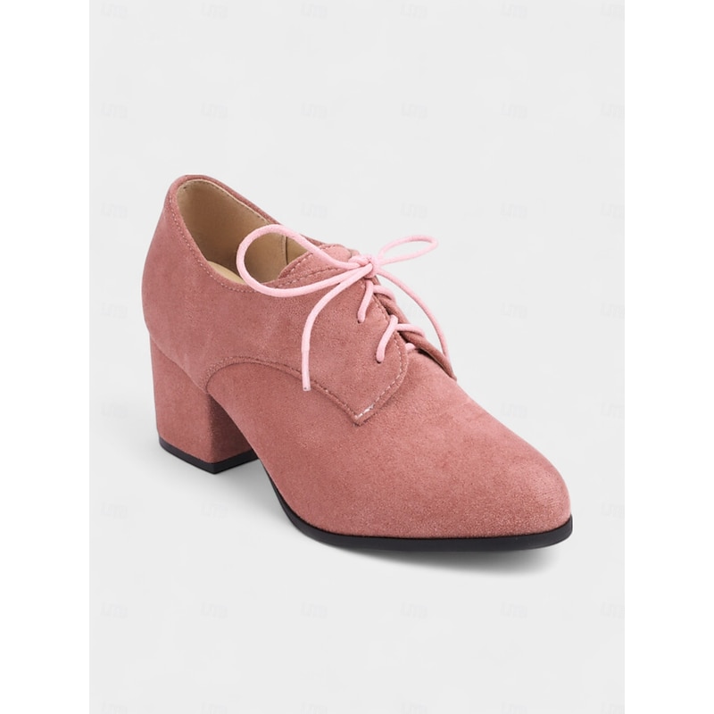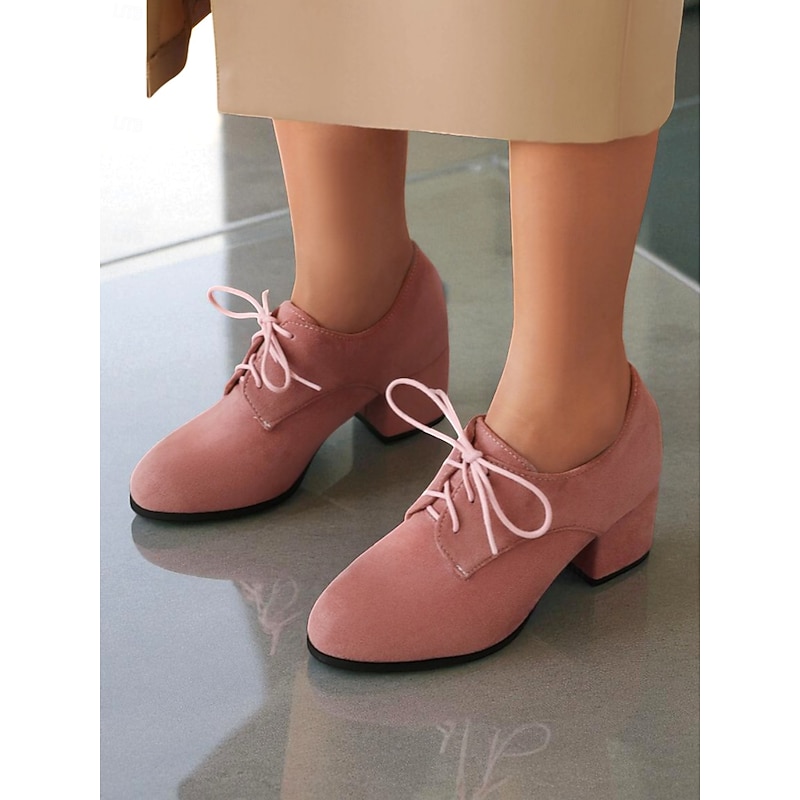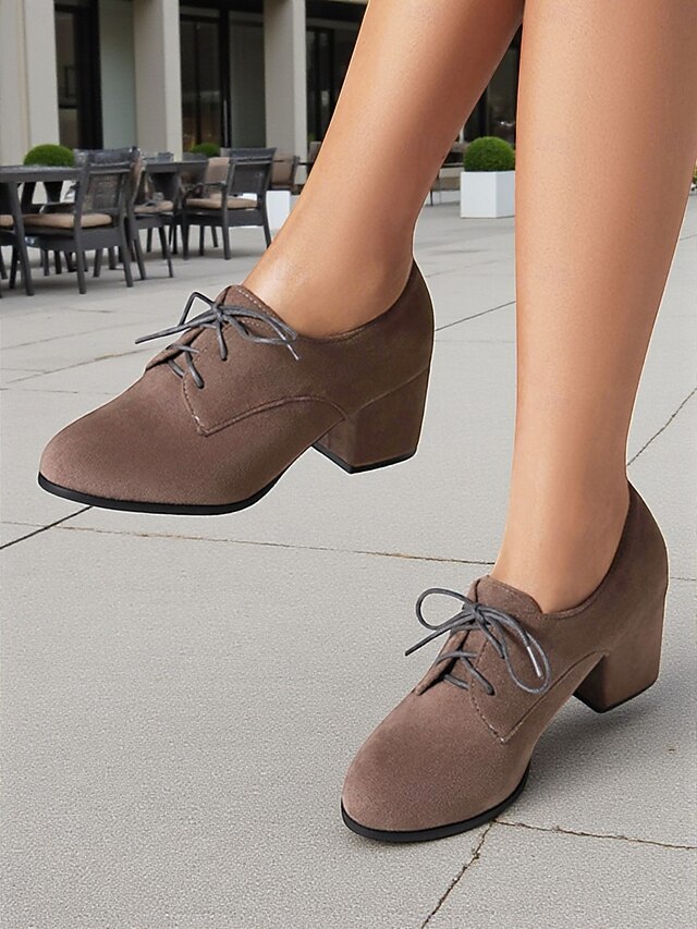 in-demand ! Women's Brown Suede Oxford Heels - pleasant Walking Lace-Up Vintage Style Shoes for Autumn Winter Outfits, Office, and Daily Wear