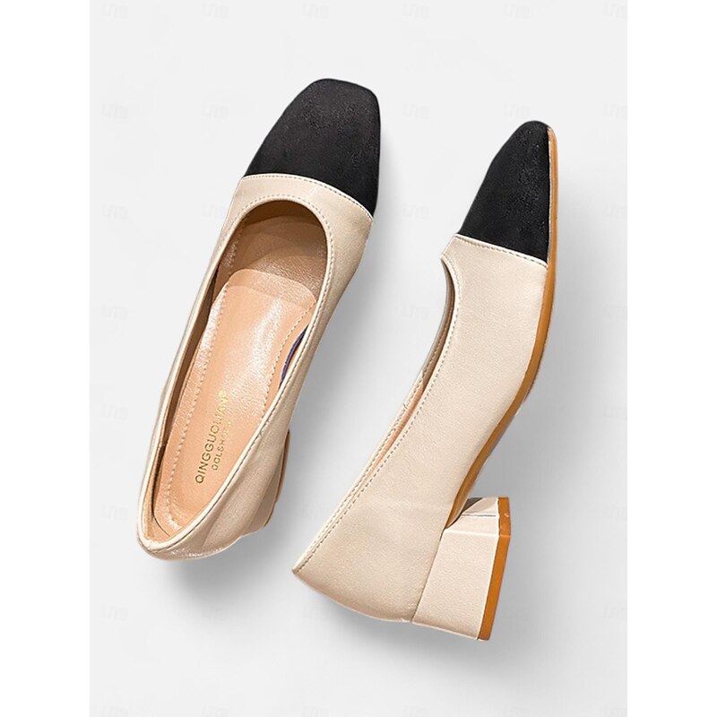 Highlights [Material and Fabrication] : Crafted from high-quality faux leather, these Women's Beige and Black Low Block Heel Pumps offer a smooth and polished finish, ensuring both durability and a sophisticated appearance. The robust material guarantees that the shoes maintain their elegant look while being suitable for prolonged use. [Silhouette and Style] : These pumps feature a smart two-tone design with a classic square toe and a chic beige body complemented by a bold black cap toe. The low chunky heel provides the perfect balance between style and comfort, making these shoes ideal for everyday wear without compromising on elegance. [Design Highlights] : The shoes are designed with a minimalist color block pattern and a secure buckle closure, adding a contemporary twist to their classic appeal. The interior is lined with a soft fabric to maximize comfort, making these pumps an excellent choice for extended wear. [Occasions and Versatility] : Perfect for a variety of occasions, these pumps are suitable for business, work, daily outings, and vacations. Whether you’re heading to the office or enjoying a casual day out, these shoes provide a blend of style and functionality to suit any setting. [Size Range and Fit] : Available in a comprehensive range of sizes from US5.5 (EU35) to US9 (EU40), these pumps cater to a wide array of foot sizes, ensuring a comfortable and perfect fit for every wearer. Perfect for everyday use. superior materials and excellent craftsmanship ensure long-lasting durability.