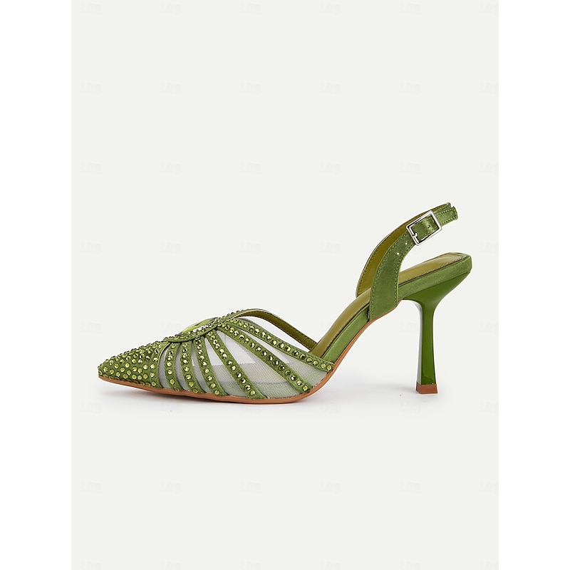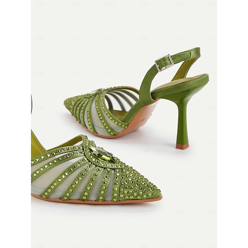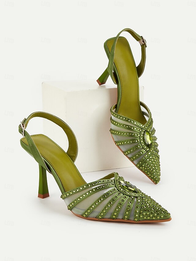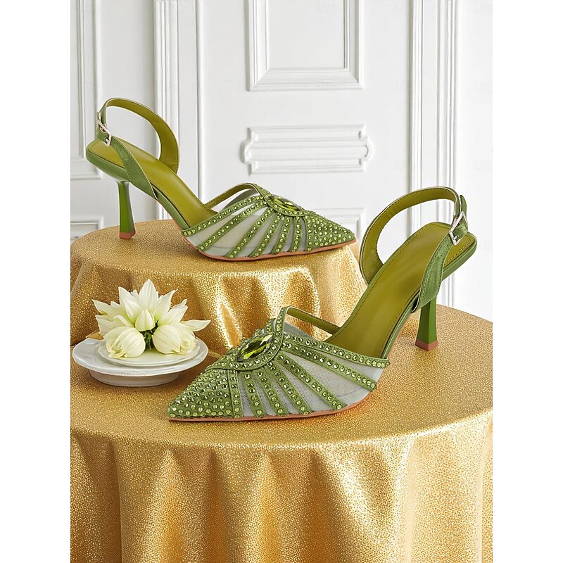 in-demand ! Women's 1920s Gatsby-Inspired Green Rhinestone High Heels – Art Deco Mesh Slingback Party Shoes for Cocktail or Retro Events