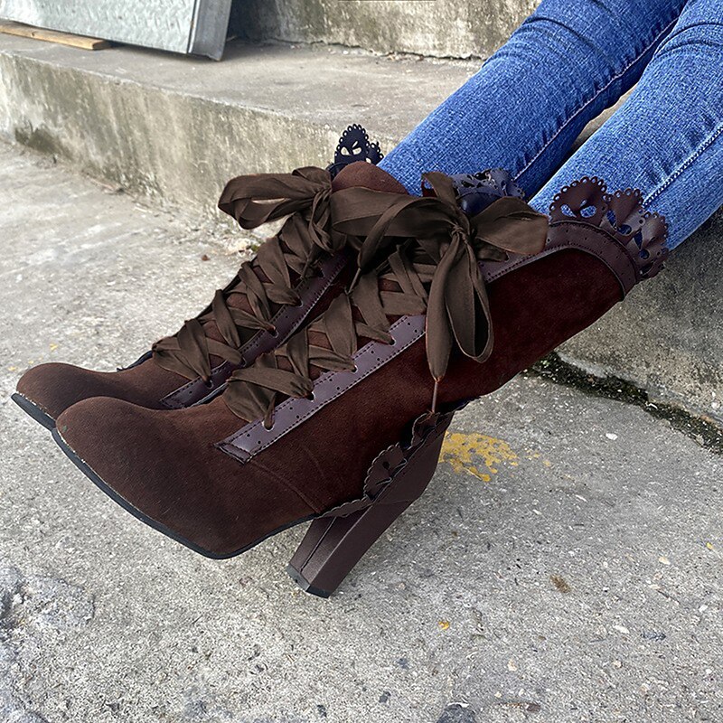 Women's Gothic Lace-Up High Heel Boots – Victorian Lolita Steampunk Booties for Cosplay, Halloween, or Vintage Parties