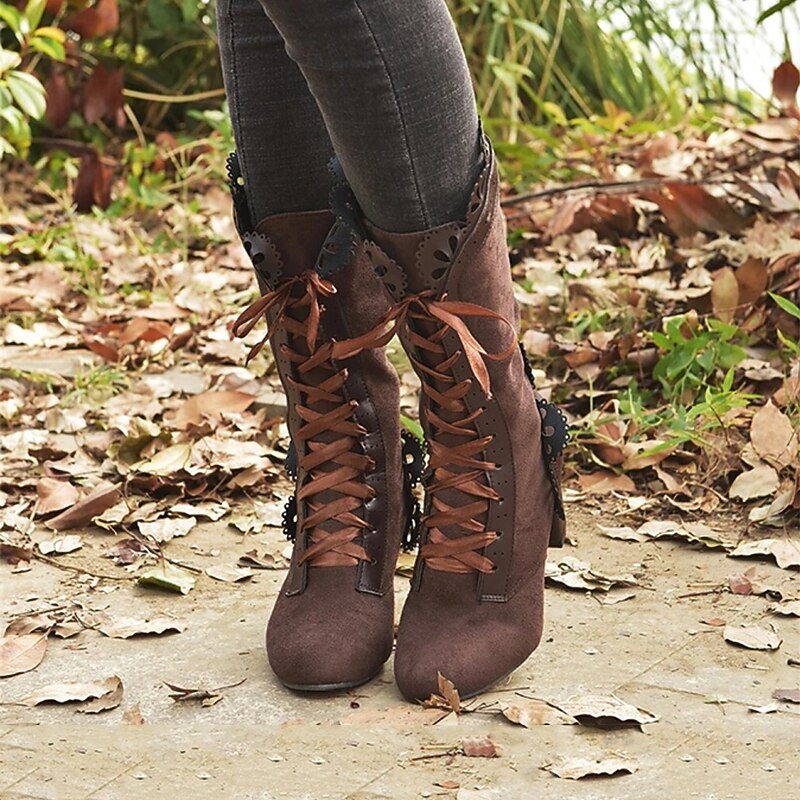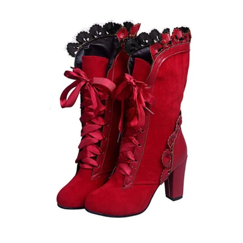 Highlights [Fabric] Crafted mainly from high-quality PVC, these women’s mid-calf boots offer a robust yet chic surface, complemented by a luxurious suede feel in black, red, or brown hues. The combination of a Vibram and rubber outsole ensures durability and comfort during the colder months of fall and winter. [Fit & Style] These plus-size boots feature a versatile design with a chunky block heel ranging from two to three inches, making them suitable for both daily wear and special occasions. The pointed and round toe options add adaptability and a touch of elegance to any outfit, while the solid-colored pattern brings a vintage charm. [Design Highlights] The boots showcase intricate leather detailing and a lace-up closure with wide satin ribbons, providing an adjustable fit and enhancing the feminine allure. The unique design effortlessly blends elegance with modern functionality, ensuring a comfortable and stable wear. [Occasions] Perfect for a variety of settings, these boots are ideal for parties, daily activities, and festive gatherings like Christmas events. Their classic design makes them a versatile addition to your wardrobe, with suitable styling for both casual and formal occasions. [Size Range] These boots are available in a wide range of sizes, from size 36 to 43, catering to diverse needs. With UK size options up to 14.5 and EU size options up to 50, these boots are designed to offer a perfect fit for every stylish woman. Perfect for everyday use. superior materials and excellent craftsmanship ensure long-lasting durability.