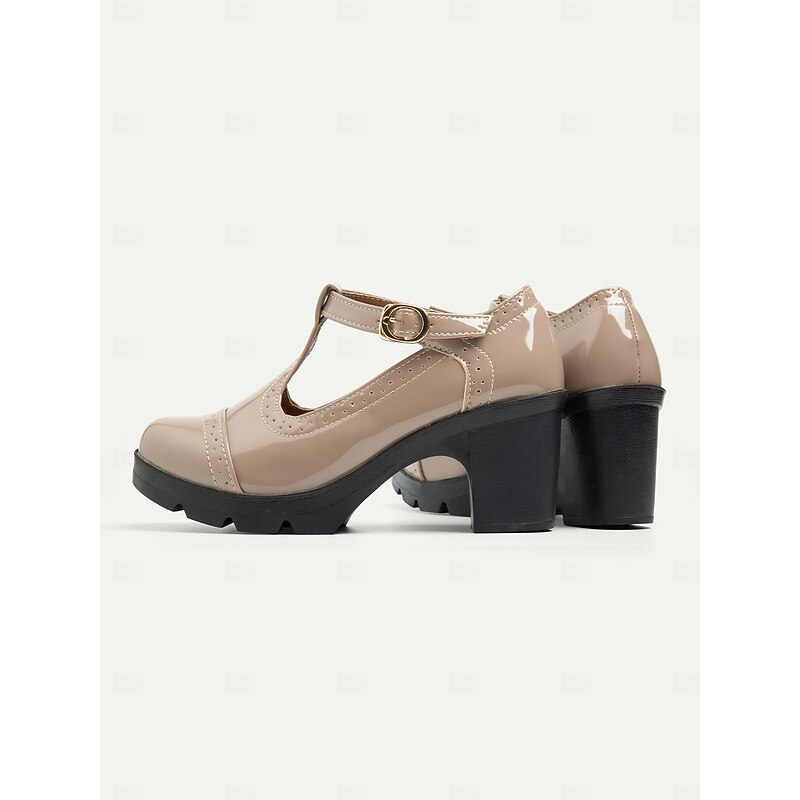 Highlights [Fabric] : Crafted from high-quality PU leather and synthetic lining, these women’s vintage T-strap chunky heel shoes offer a glossy, patent finish that’s both eye-catching and easy to maintain. The combination of materials ensures comfort and durability, suitable for all seasons. [Style] : Featuring a vintage-inspired design, these shoes present an elegant and versatile look with their round-toe shape and mid-level chunky heel. The T-strap with a secure buckle closure lends a retro charm and provides stability for all-day wear. [Design Highlights] : The standout feature of these shoes is their timeless T-strap design with an adjustable buckle closure. The robust rubber outsole offers great traction and durability across various surfaces, making these shoes a practical choice for daily use. The neutral beige color complements a wide range of outfits, adding a touch of sophistication to any ensemble. [Occasions] : Perfect for office settings, parties, and everyday wear, these versatile shoes can seamlessly transition from formal events to casual gatherings. Their elegant design and comfortable fit make them suitable for diverse occasions throughout spring, summer, fall, and winter. [Size Range] : Available in a wide range of sizes, including US5.5 to US10.5, these shoes ensure a great fit for many foot sizes. It is recommended to select one size larger than usual for an optimal fit. Perfect for everyday use. superior materials and excellent craftsmanship ensure long-lasting durability.