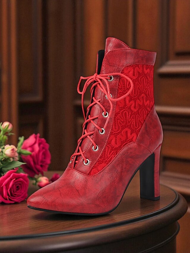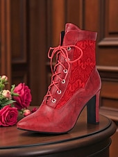 This Women's Red Lace-Up High Heel Ankle Boots - Retro Chic Faux Leather and Lace Victorian Style Boots for Fall Outfits,Streetwear and Holiday Events combines elegant design with practical functionality. Every detail has been carefully considered to ensure you get the best possible experience. The magnificent construction means this product will serve you well for years to come.