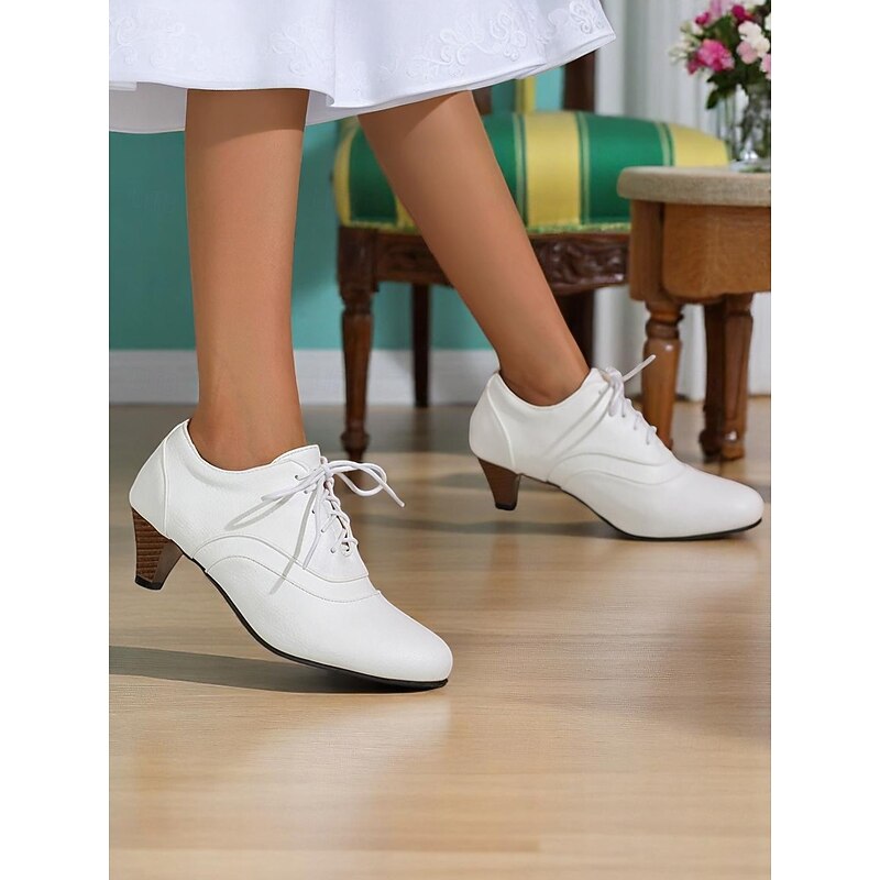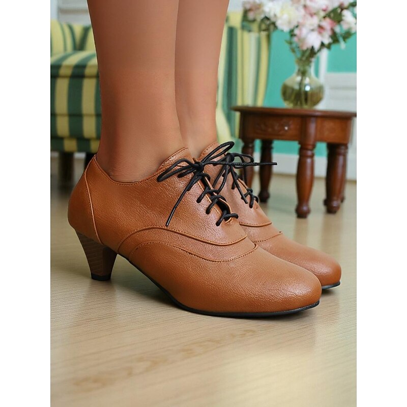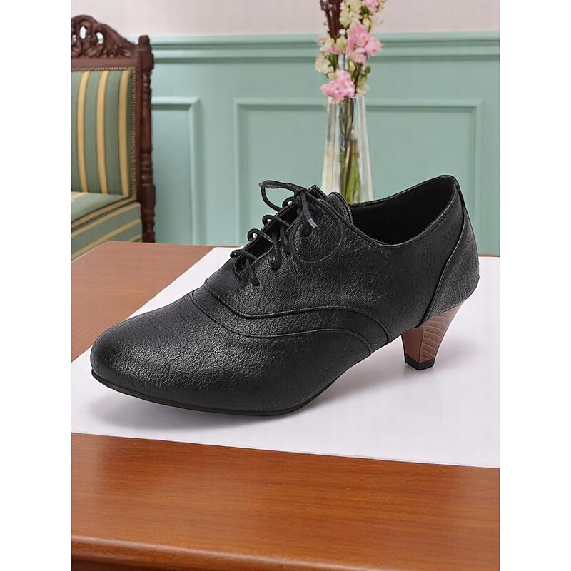 in-demand ! Women's 1950s Vintage Lace-Up Oxford Shoes – Retro Faux Leather Mid Heel Dress Shoes for Special Occasions and timeless Outfits