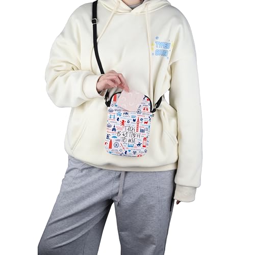 Fabric type: PolyesterOrigin: ImportedClosure type: MagneticMultifunctional: This 21.4ร14.5 cm (8.5ร5.7) canvas crossbody bag with three pockets stores all daily essentials. Its compact, lightweight design offers easy carry for shopping, travel, outdoor activities, etc. It fits phones, cards, keys, makeup, supplies, and more. The crossbody style frees your hands, ensuring a pleasant, stress - free outing.Material and Quality: the bags are made of durable and waterproof canvas fabric, the zipper is smooth and easy to use, durable and portable. It's easy to clean, so you don't need to worry about the color transfer of makeup residual stains. Adjustable wide strap(16.9 in -31.5 in) meets your different needs and you can also take off the strap if you need.Special print and design can highlight your personal character and taste easily.Meaningful Gifts: Makes a nice gift for British people, Britisher, British Culture lover, British lover, visitor, traveller, tourist and resident.Perfect as a Birthday gift, Christmas present, or just to show how much you care! This funny inexpensive gift idea makes the perfect choice for putting a smile on their face.The small crossbody is perfect to keep all your essential little things safe. Ideal for every travel if you like to have all your accessories with you. Ideal for shopping, travel, vacation, business trip, gym, music festivals and daily use. If you are not satisfied with our product or service, please feel free to contact us, and we will solve your problem soon. Perfect for everyday use. first-class materials and excellent craftsmanship ensure long-lasting durability.