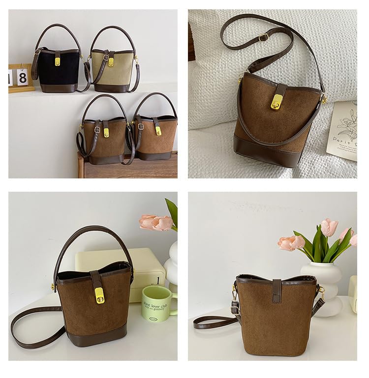 Bucket Bag for Women retro Crossbody Purse Leather Shoulder Bag Handbag with Adjustable Strap