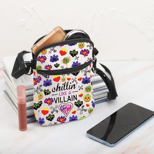 Origin: ImportedClosure type: Zipper★Bag with Lettering: CHILLIN' LIKE A VILLAIN. Great gift for fans or villain lover.★Material: Made of superior canvas material, waterproof, wear and robust. The metal zipper is strong with anti-slip function and not flimsy.★Size: 5.7 Length x 0.78 Width x 8.26 Height. Adjustable strap suitable for all groups of people. TIPS:manual measuring permissible error.★Multifunctional: This crossbody bag easy to carry, fold, and store. It can accommodate small items needed for daily use and suitable for daily commuting, shopping and travel.★Great Ideal Gift: Gift for any occasion - Mother’s Day, Anniversary, Wedding, Birthday, Holiday, Christmas, Valentine’s Day Gift for family, Best Friend or Treat Yourself. Perfect for everyday use. High quality materials and excellent craftsmanship ensure long-lasting durability.