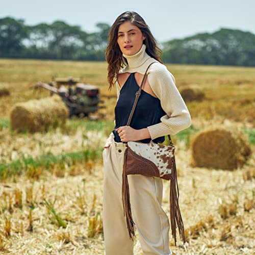 Myra Bag Western Leather Shoulder Handbag for Women - Cotton & Upcycled Canvas Boho Bag with Tassel Fractional