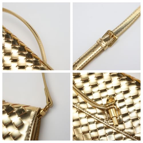 Origin: ImportedClosure type: BuckleDesigner Dupe Clutch Purse: This woven purse bag has gold buckle closure design and cute woven texture. This woven handbag with a retro design is reminiscent of the popular 90s Y2K trend.Versatile Carry Options: The removable shoulder strap can be adjusted, which make this woven clutch can be carry as clutch handbag, satchel bag, shoulder bag, evening bag or crossbody bag. This gold clutch purse is very attractive with matching jewelry and shoes.Spacious Interior Capacity: 12(L)x 2(W)x 5(H) inches. The woven leather handbag is roomy enough to hold all your daily necessities such cellphone, keys, cards, small wallet, mini mirror, lipstick, gum, tissues or essential make-up items.Fine Material: This woven crossbody bags for women is made of gentle and durable gold color PU leather, sturdy golden hardware accessories, not easy to fade or wear and tear.All match Style: This woven bags purses for women is suitable for daily casual, holiday, formal events, cocktail party, night out, prom, dating, and most occasions, also it's a perfect gift for special occasions like Christmas, New Year, birthdays, anniversaries, Mother's Day, Thanksgiving, and Valentine's Day. Perfect for everyday use. first-class materials and excellent craftsmanship ensure long-lasting durability.
