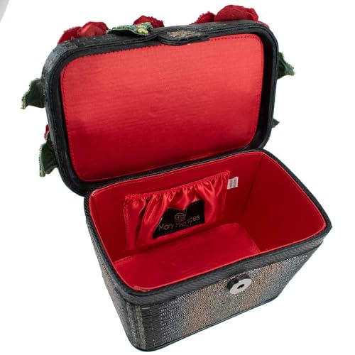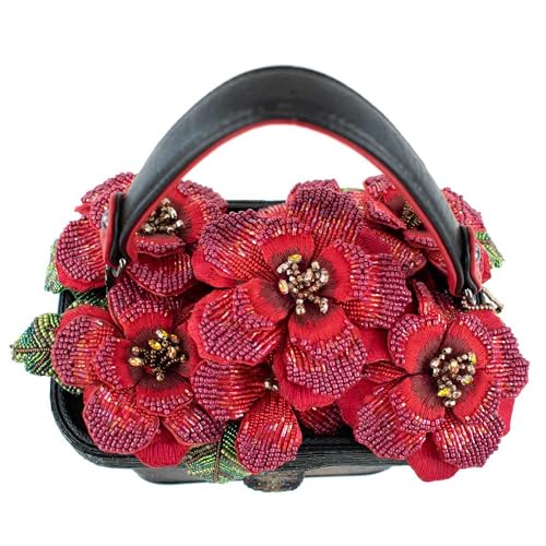 Origin: ImportedClosure type: MagneticLining: Polycotton3D Blooming Floral Art: Bursting with hand-beaded red blossoms, this novelty handbag brings garden-inspired elegance to life with vibrant 3D flowers that radiate color, dimension, and artisan charm.Striking Textured Base: Each blossom is set against a black basket-weave textured backdrop, offering a bold contrast that enhances the detail of every shimmering bead and creates a rich, elevated look.Shimmering Flower Accents: Intricately placed beads and sparkling centers give each flower a radiant finish, blending nature-inspired beauty with exquisite craftsmanship for a head-turning accessory.Functional & Fashionable: Features a hidden magnetic closure, structured silhouette, and a pleasant non-removable beaded handle—making it as practical as it is eye-catching for day or evening wear.Signature Finishing Touch: Complete with Mary Frances’ designer logo charm, this handbag makes a fabulous gift or personal statement piece that combines floral flair with timeless sophistication. Perfect for everyday use. first-class materials and excellent craftsmanship ensure long-lasting durability.