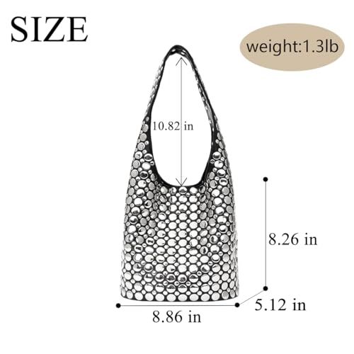 Fabric type: PU LeatherOrigin: ImportedClosure type: MagneticMaterial: This studded tote bags is made of durable pu leather and other superior materials for durability, a comfortable feel and an easy-to-clean surfaceSize: 8.86 in*5.12 in*8.26 in (L*W*H), Handle height 10.82 inches. Large capacity, the handbag can accommodate mobile phone, glasses, headphones, cosmetics, wallet and other items to meet your daily travel needs, have a variety of backpack way, such as shoulder bag, tote bag or handbag, feel free to matchOccasion: This 90s PU leather shoulder bag is simple and trendy in design, whether you are going to work, travelling, dating or attending a party, this bag can easily meet your needs and make a great impression on othersPractical structure: this y2k purse is designed with 1 main pocket inside 1 inner insert pocket, which can separate your small items and make it easy for you to access your itemsWarm Gift: An ideal gift for your loved ones on anniversaries, birthdays, Valentine's Day, Mother's Day, Thanksgiving, Christmas or wedding anniversaries. This cute and chic stud hobo purse is sure to be a hit with girlfriends, wives, mothers and friends Perfect for everyday use. High quality materials and excellent craftsmanship ensure long-lasting durability.